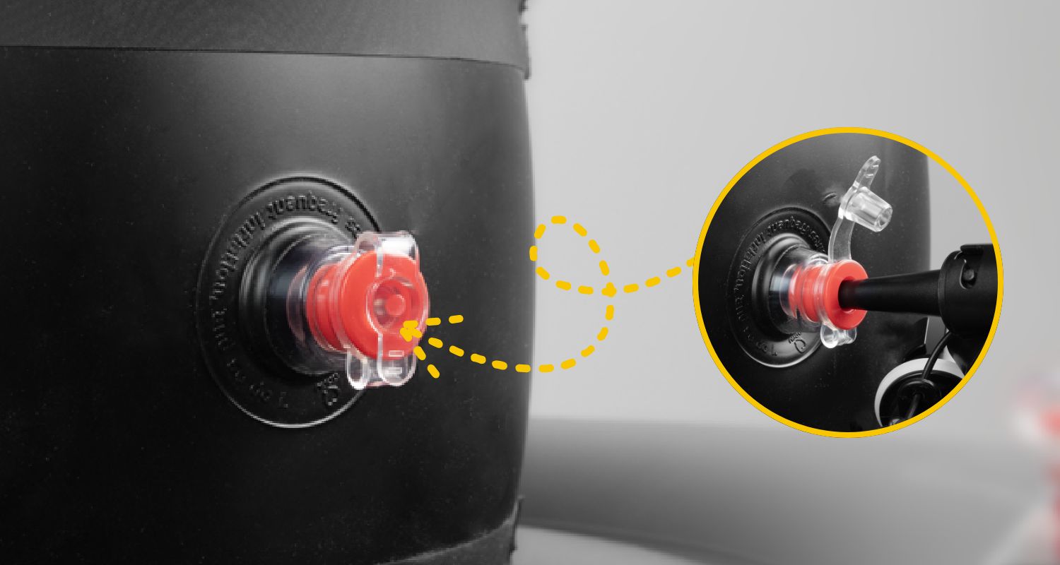 Fill with air, then close the inflation valve slightly to avoid air leakage.