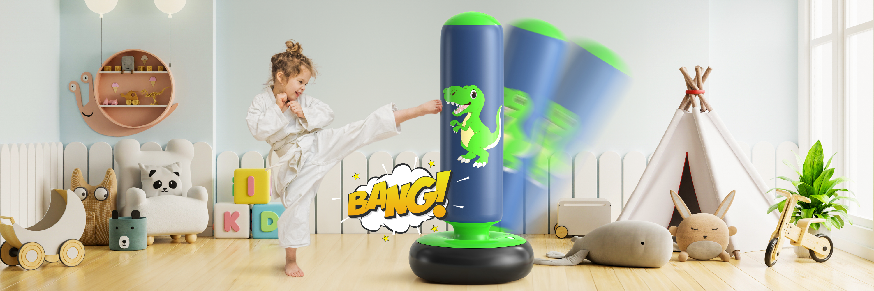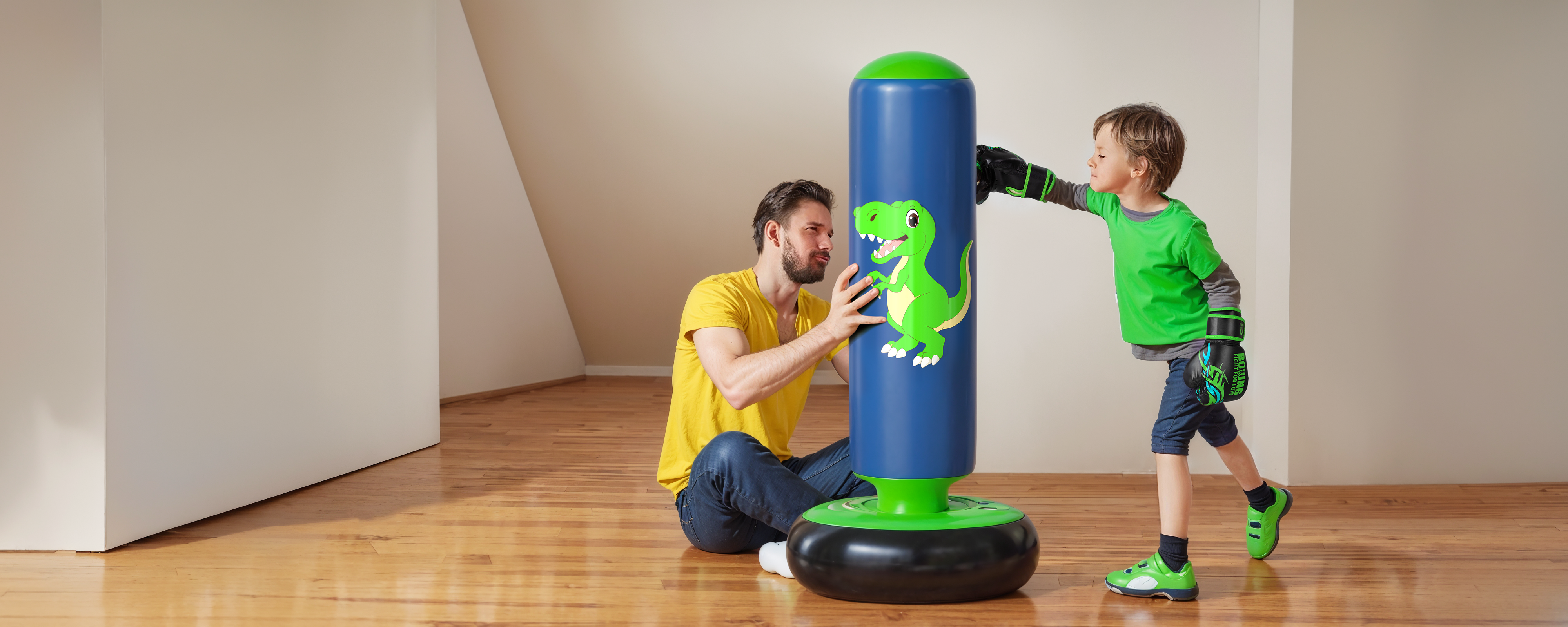 - Promotes Growth: The simple act of hitting, kicking, and punching this inflatable punching bag helps kids develop balance, strength, and coordination. Your child can reduce tension and develop confidence by using a kicking punching bag during playtime. Let your children grow alongside this inflatable boxing bag.