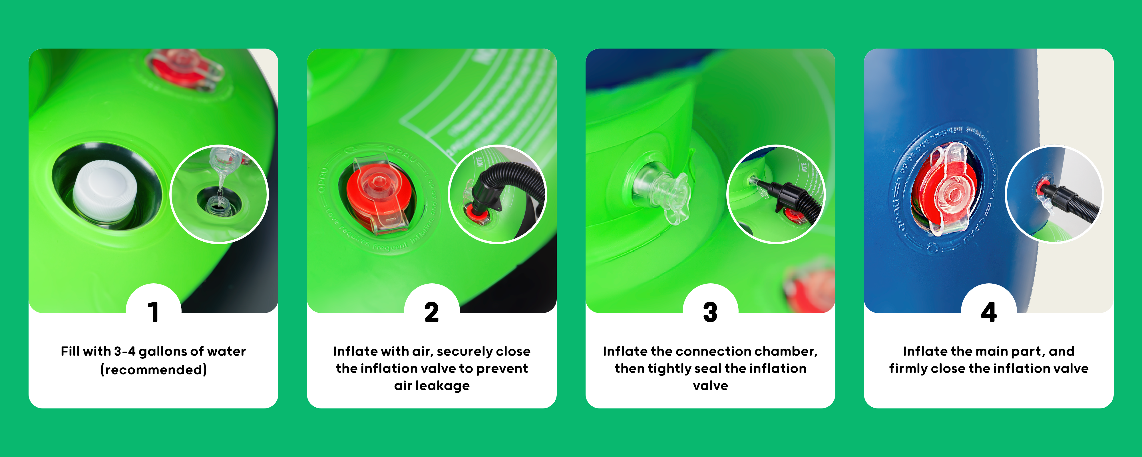 Please set up and use different products according to the instructions and precautions provided in each product's manual. Ensure proper inflation and supervise children during use.