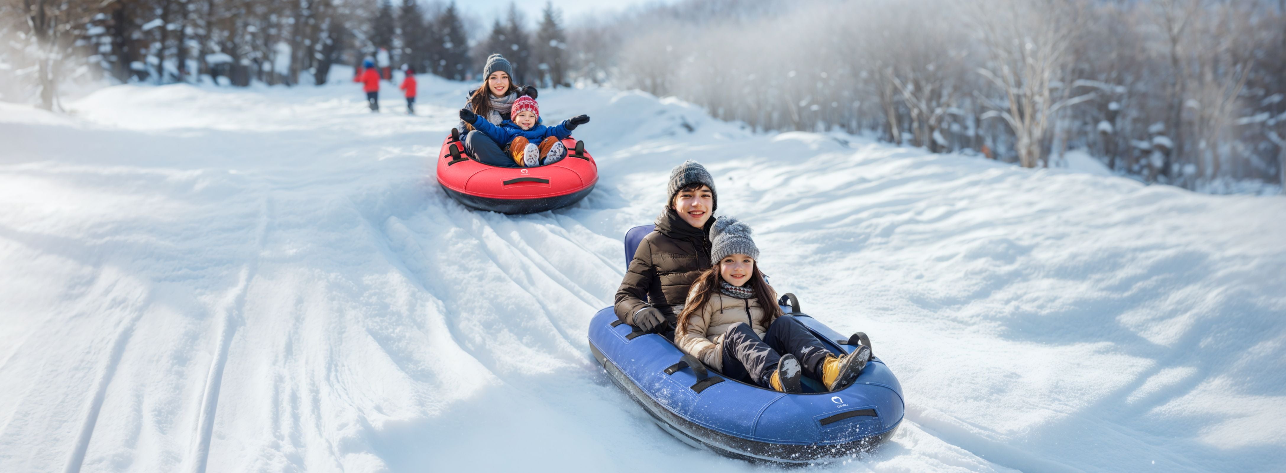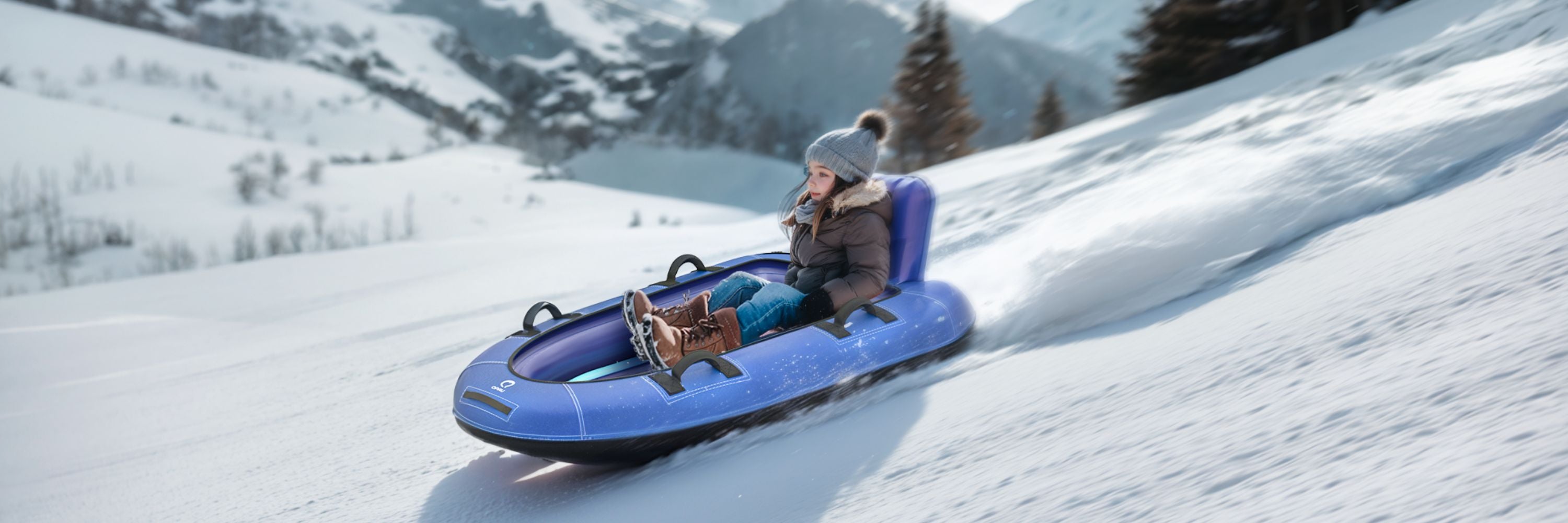 The QPAU Snow Tube with a premium canvas cover is designed for both kids and adults, Crafted with high-quality materials, this 48-inch inflatable snow tube ensures durability, comfort, and performance, making it a must-have for your winter gear collection.